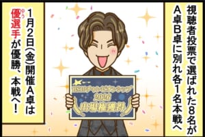 第2戦の対局者は、赤坂ドリブンズ・鈴木たろう、渋谷ABEMAS・多井隆晴、セガサミーフェニックス・東城りお、そして小林の4名。