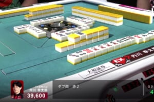 東場を2000点と2600点の被ツモ失点で耐えていた近藤に、初アガリが訪れたのは南2局。ダブ・赤1の3900点をトップ目の滝沢から直撃する。これによって4者が2万点の僅差に。