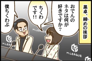 待ち。4着目の渋川が追いかけるも白鳥がツモアガリ。2000・4000で白鳥が逆転勝利、個人最多の13勝目を勝ち取った。