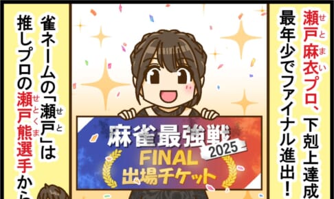 瀬戸麻衣プロ、 下剋上達成!! 最年少でファイナル進出! 【Mリーグほぼ毎日4コマ】 2025年9月27日 作・藤島じゅん/VOL.952 麻雀最強戦2025 女流下克上決戦