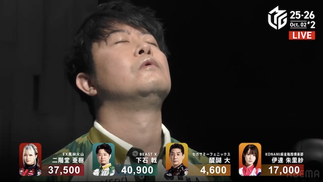 ひょうひょうとしているように見える下石だが、試合後には思わず目をつぶって天を仰いだ。麻雀でトップを取るなんて、これまでに何千回、もしかしたら1万回以上はあるのかもしれない。しかし、やはりこの舞台でのトップには格別なものがあるのだろう。