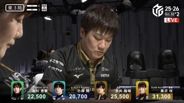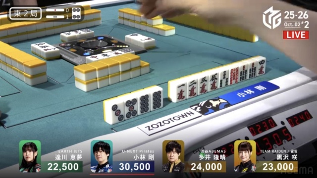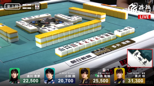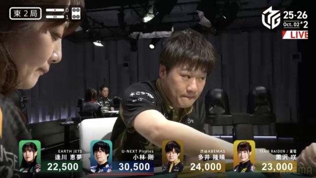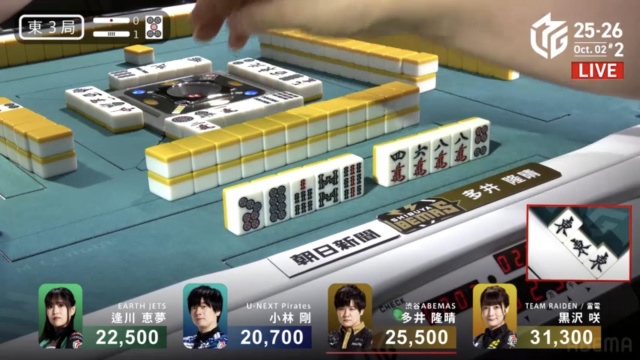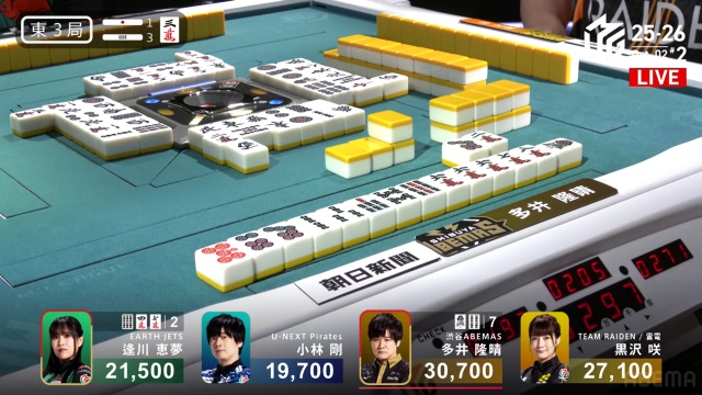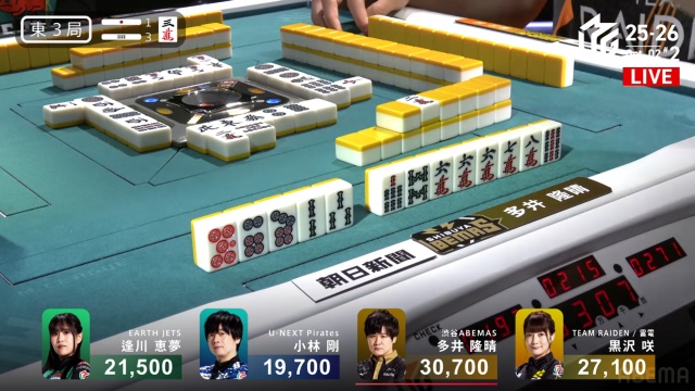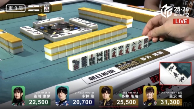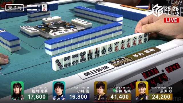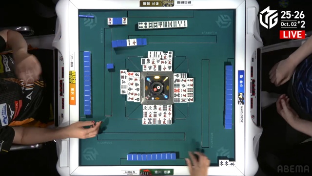 安全牌などと持ち替えるまでの、わずかの巡目においての話ではあるが、「先手が取れているなら、相手の読みをずらしにいく」のは多井が得意とするところだ。