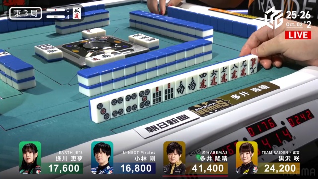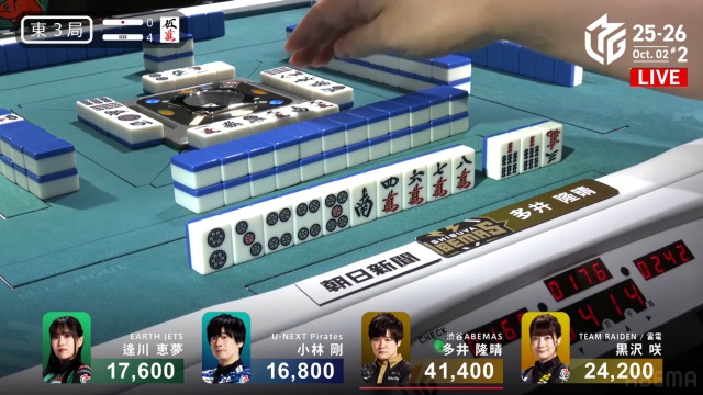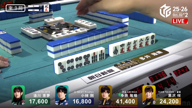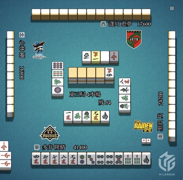 さらに、多井は東3局4本場、