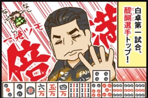 東2局1本場では浅井のリーチに寿人が追いかけるも、浅井のツモアガリで決着。ドラでツモアガってウラ2のピンフ・タンヤオの3000・6000。この2度の大物手のアガリで、以降は浅井が独走。直近の連敗が嘘のような快勝ぶりで、浅井が今季の初勝利を手にした。