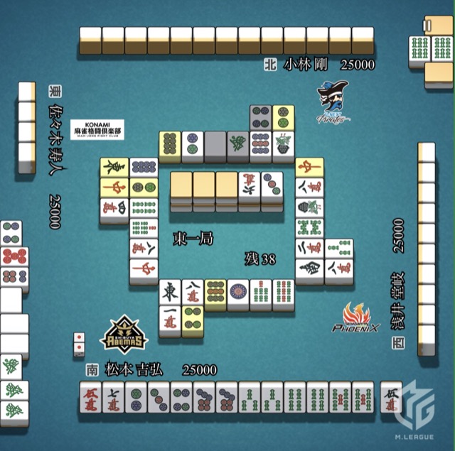 待ち。フーロしている3メンツで既に満貫が見えている。