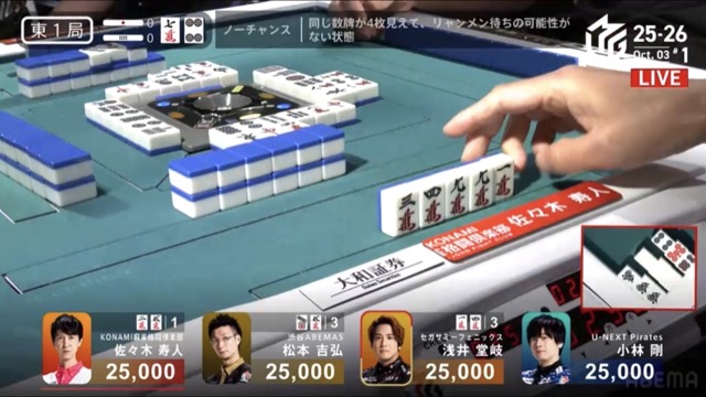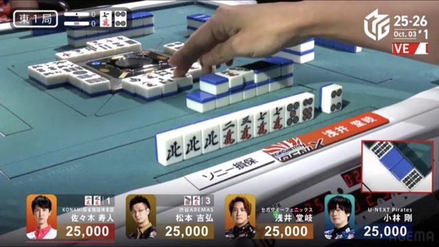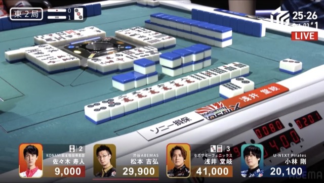 リーチ一発ドラ3裏3の倍満を寿人から討ち取ってロケットスタートに成功。
