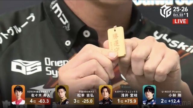 浅井堂岐、裏ドラ5枚の快勝劇〜熾烈な2着争いを制したのは?【Mリーグ2025-26 レギュラーシーズン 観戦記 10/3 第1試合(麻雀チャンネル)】担当記者 千嶋辰治