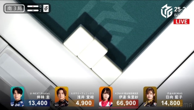 この後、更に6,000オールを決めた日向が見事に伊達を捲り、大逆転トップを持ち帰った。