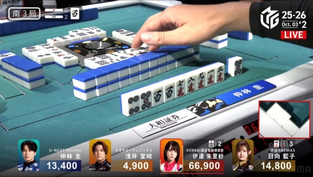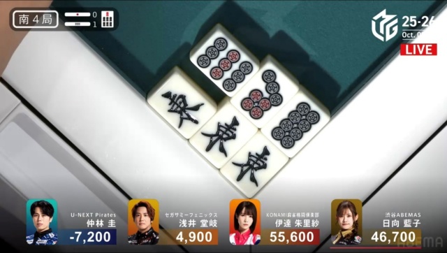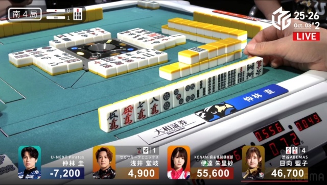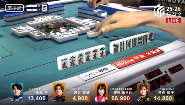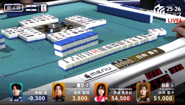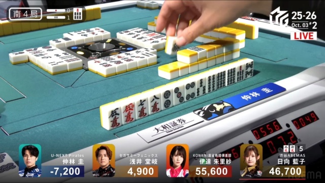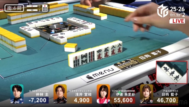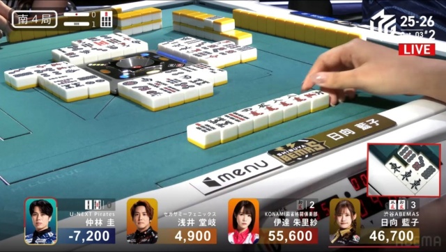 日向がツモアガリを決めて、仲林のチャンスは終わる。