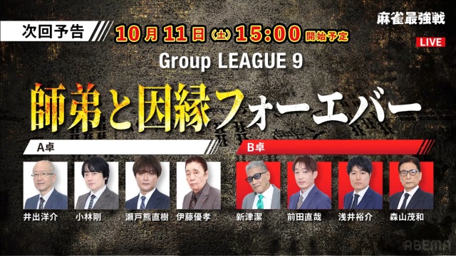 次回の麻雀最強戦2025は10月11日(土)に行われる「師弟と因縁フォーエバー」。