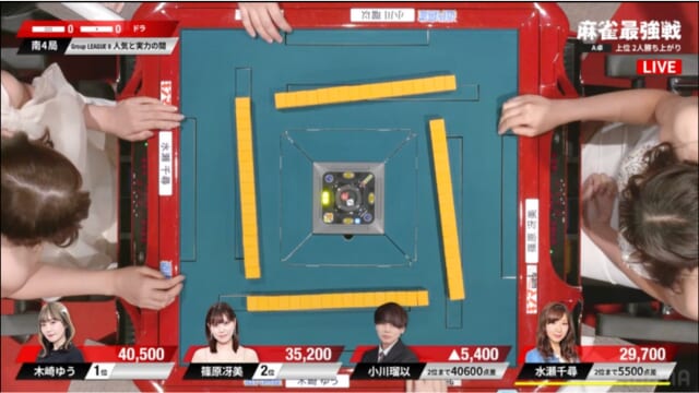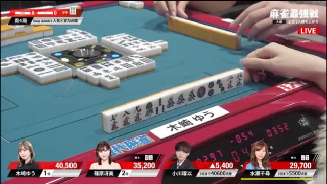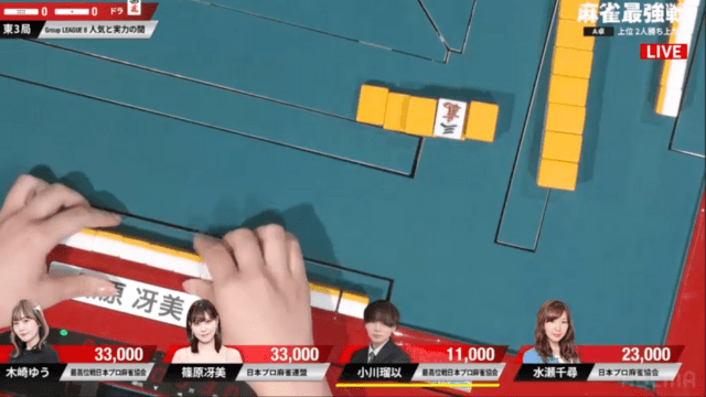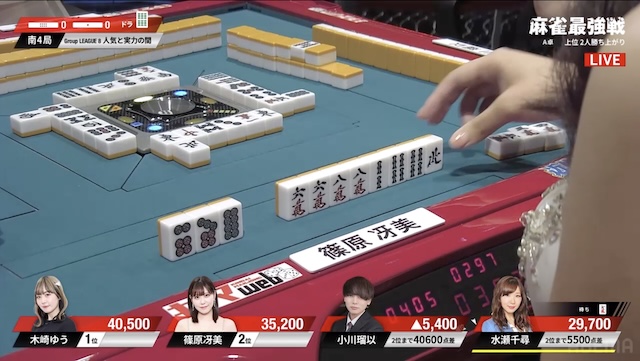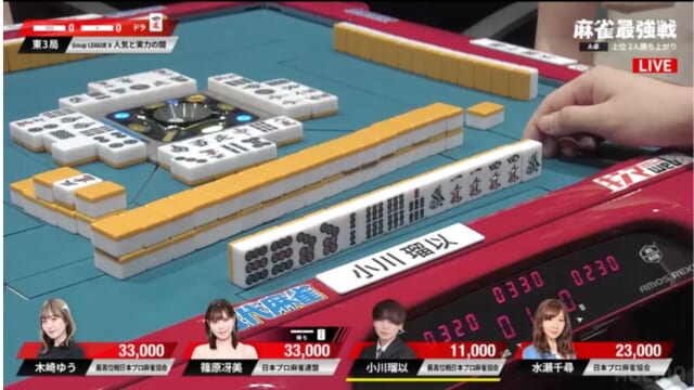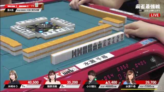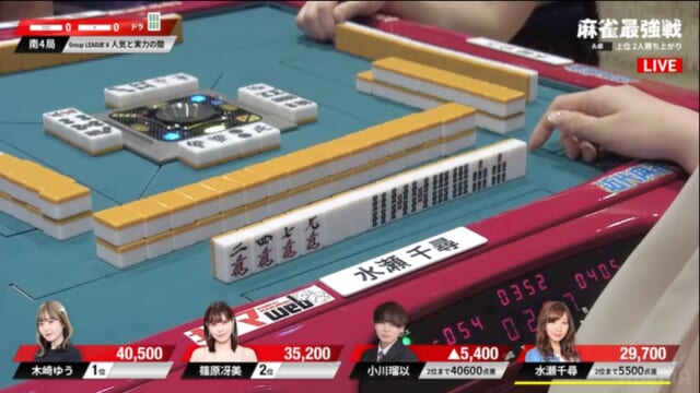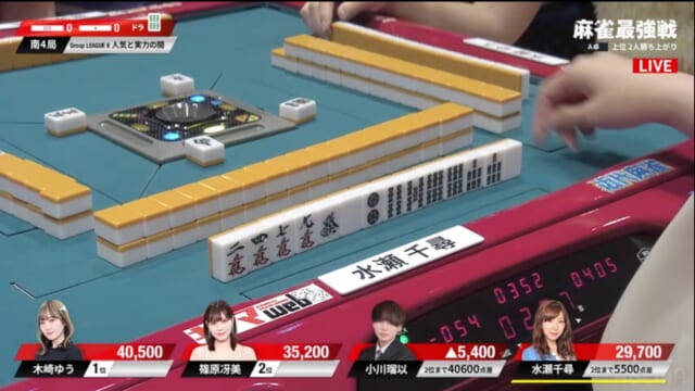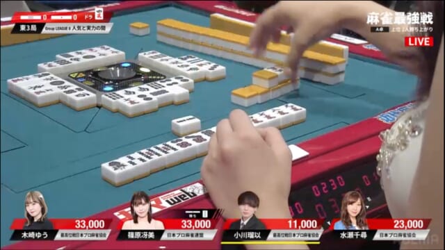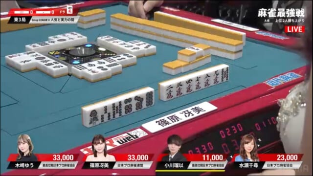 そして、水瀬、篠原の手牌も良く、誰が先にアガるのか楽しみな局になった。