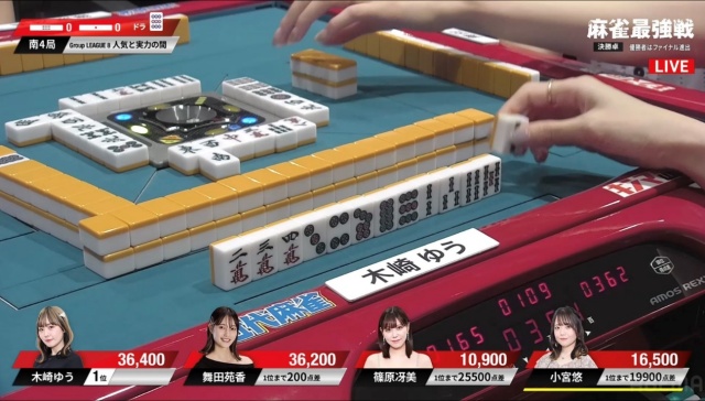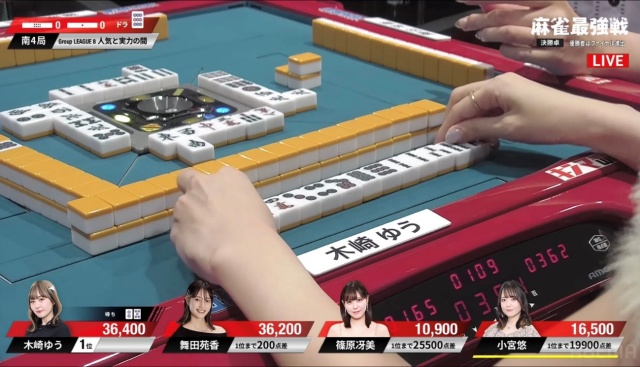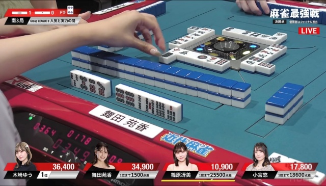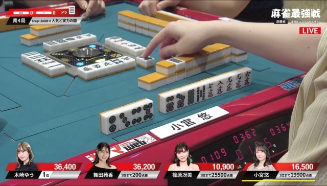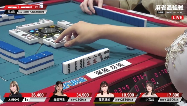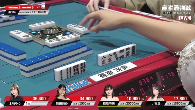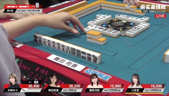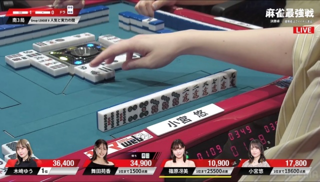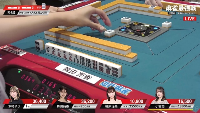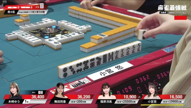 小宮から放たれたで舞田の1,000点が決まり、運命のオーラスへと突入。