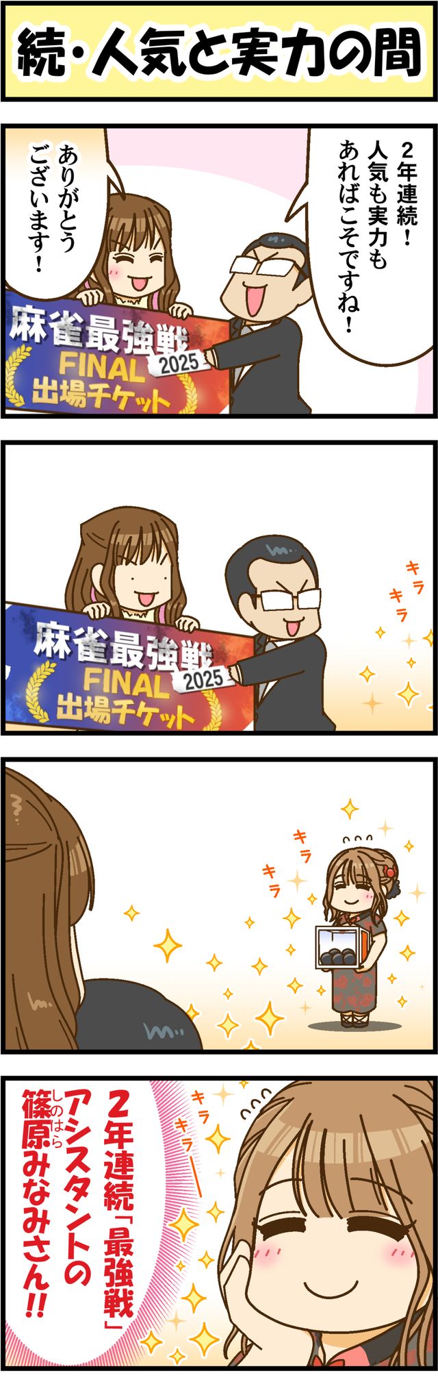 【麻雀最強戦2025】人気と実力を兼ね備えた木崎ゆうプロが、2年連続ファイナル進出!!【Mリーグほぼ毎日4コマ】藤島じゅん/VOL.959