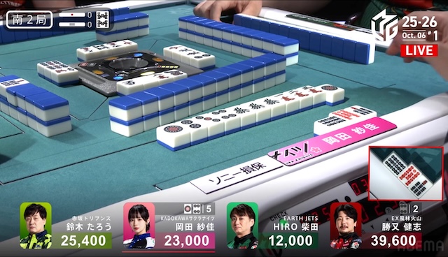 南2局1本場、岡田の副露判断が面白い。