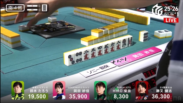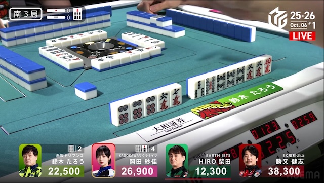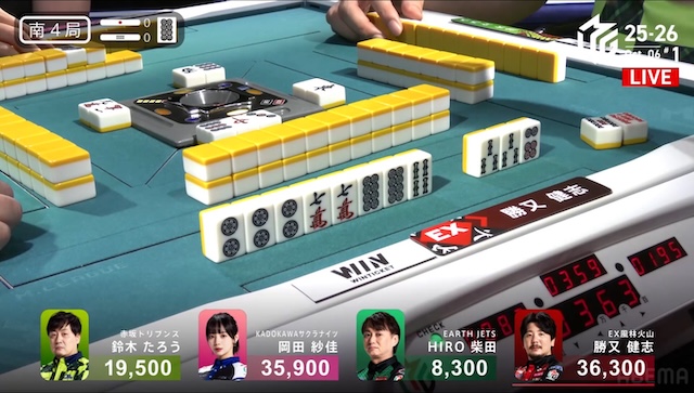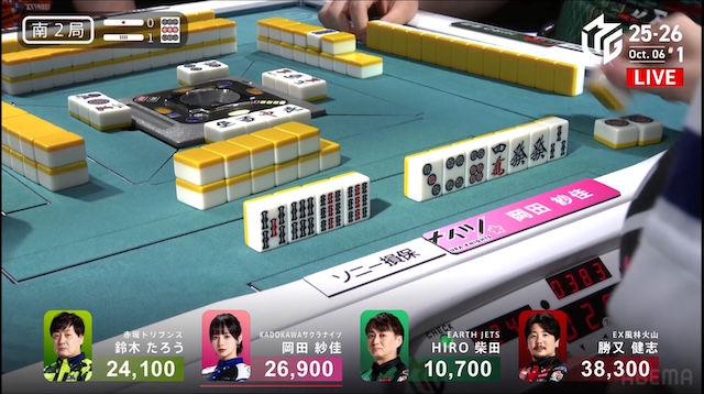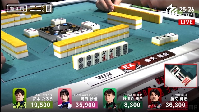 続け様にが鳴けて、瞬く間に勝又にテンパイが入った。