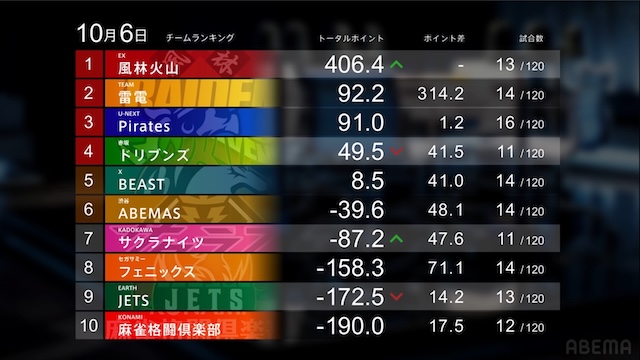 最後はたろうがハイテイ手番で1つ着順を上げるツモアガリで決着。