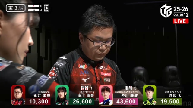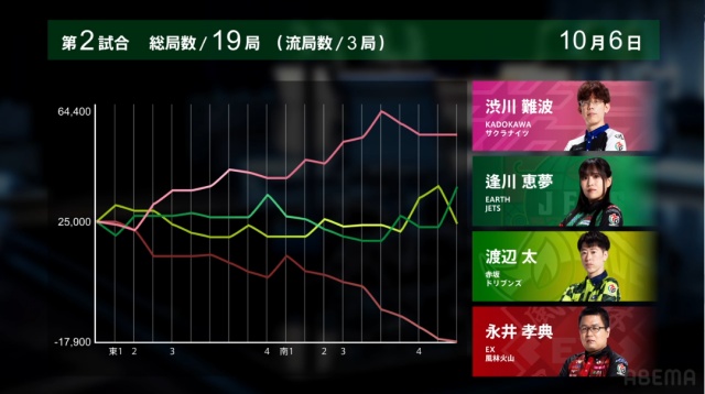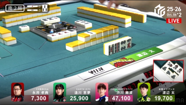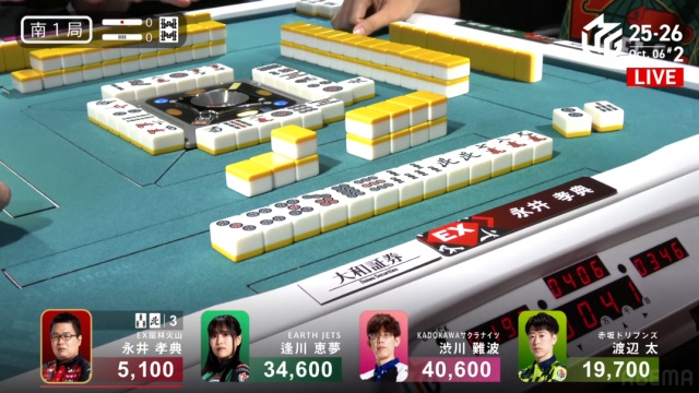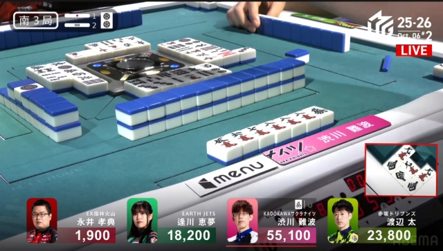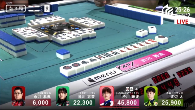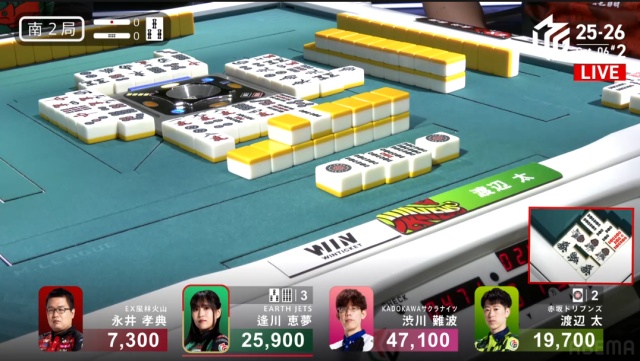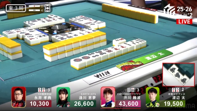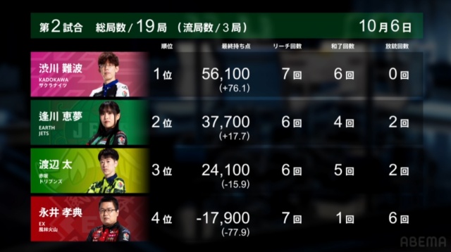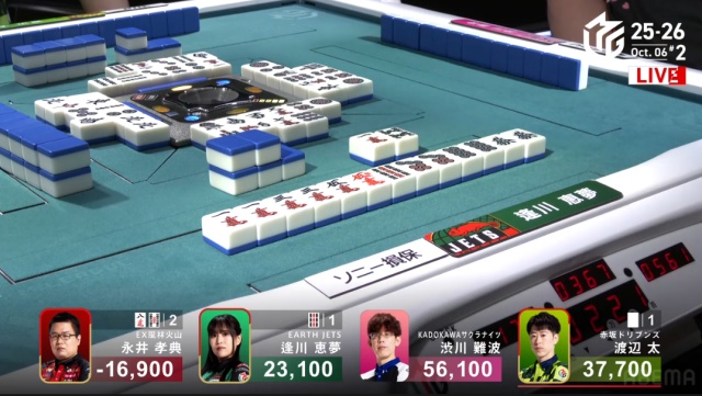 しかし6本目にしてようやくの和了りは2着目逢川から7700の直撃に。