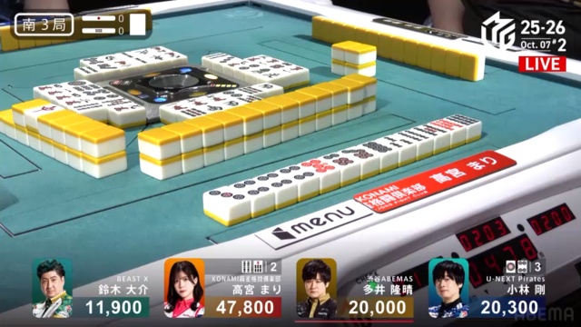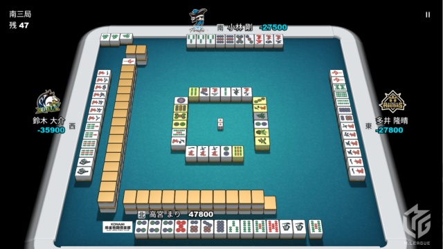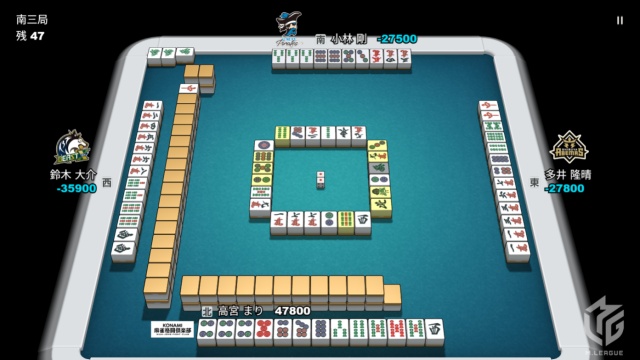 現在47800点持ちのトップ目。2着の小林との差は27500点。すでに断トツになっている。