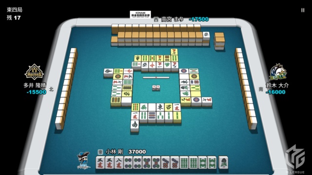 終始、配牌にもツモにも恵まれず苦しい半荘となった大介からが出て、8000点。タンピン赤赤の和了り。高宮は、テーマ通りの、ダマでの局消化に成功。それも満貫の収入のおまけ付きだ。