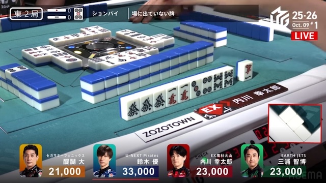 優の欲しい【東】はなんと2枚山。3人テンパイで一気に場の緊張感も上がる。