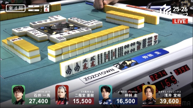 さらに、南1局3本場も、リーチを打った堂岐の一人テンパイで流局。