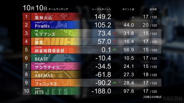 滝沢→高宮→寿人の3連勝リレーでチームポイントがプラス域へ浮上した。