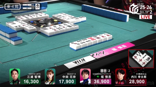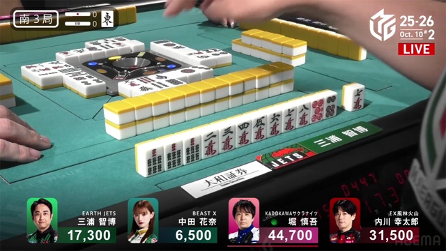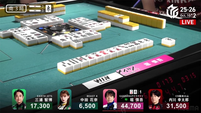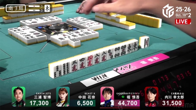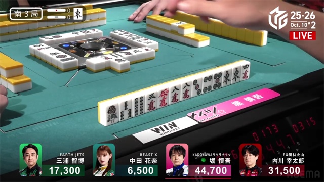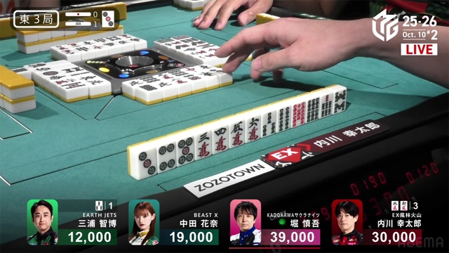 しかし、幸か不幸か内川も三浦も手が進まず、堀の当たり牌が場に放たれることはなかった。