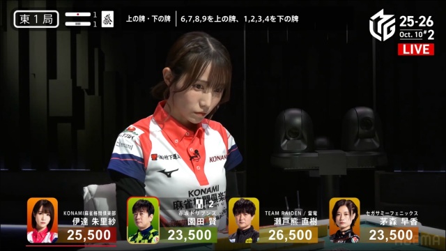 🟥東家:朱きヴァルキュリア18号アリサ(伊達朱里紗/KONAMI麻雀格闘倶楽部)