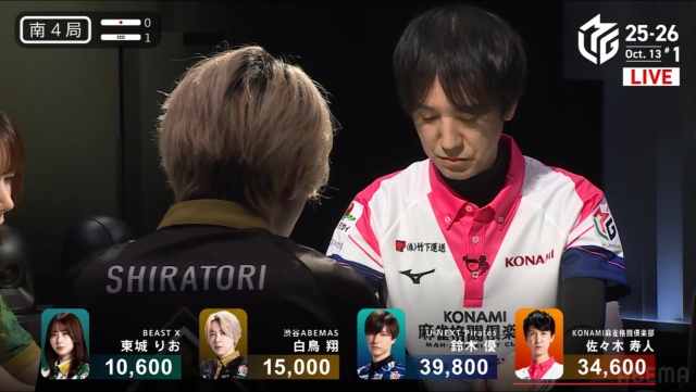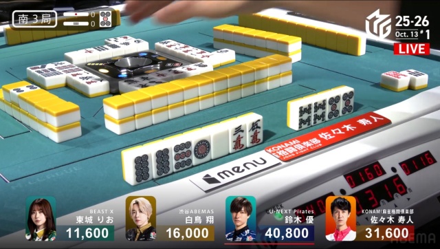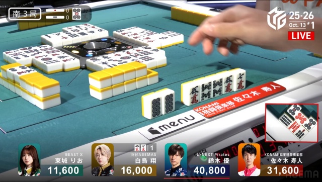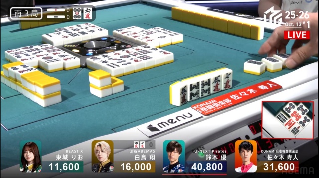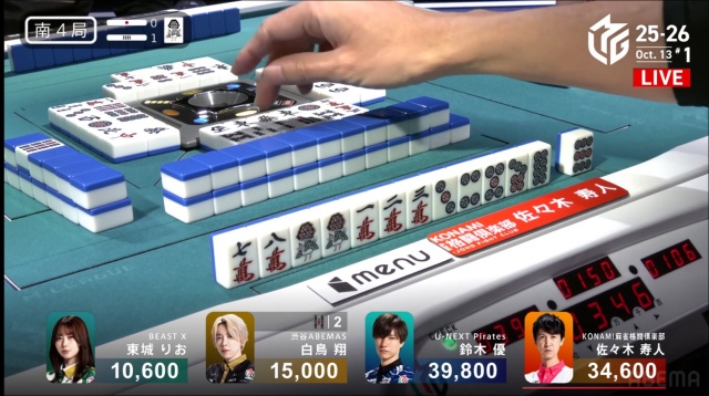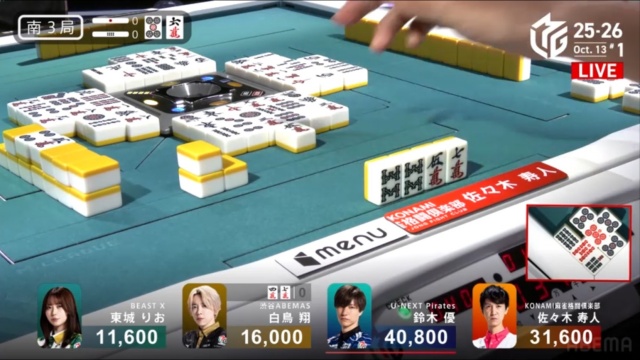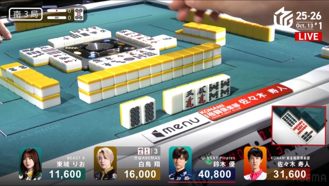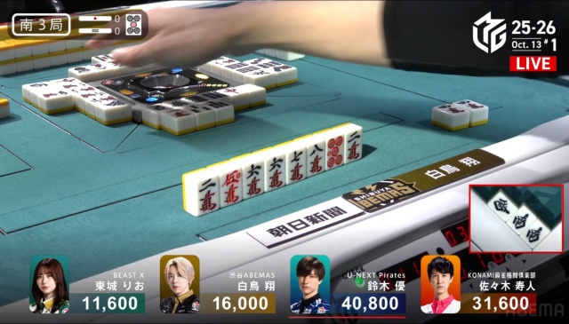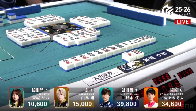 目下ライバルだった白鳥が点棒を減らし、上が見やすくなる。