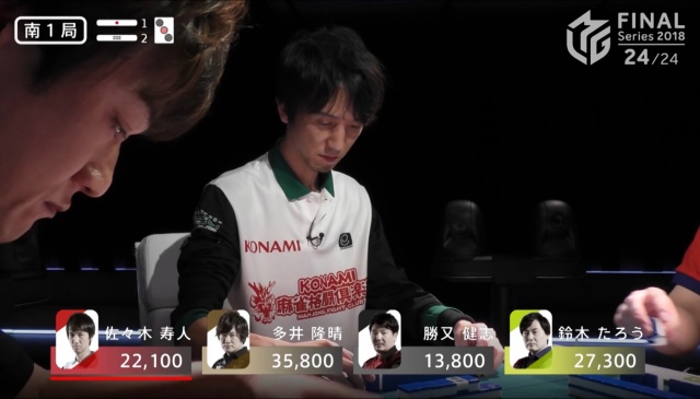 南2局でも1000、2000をツモアガった寿人が、この局も前に出る。