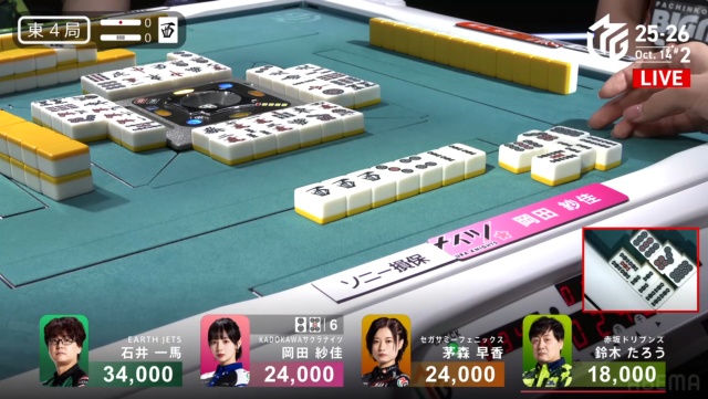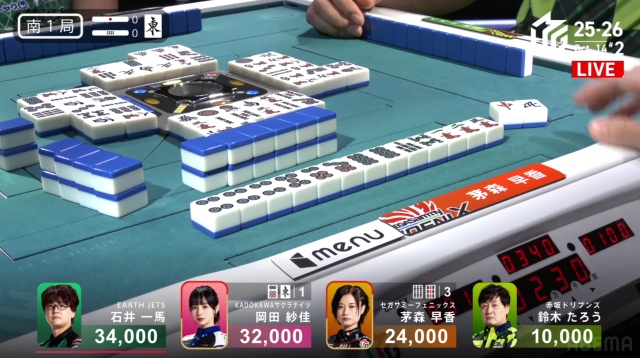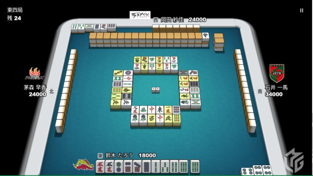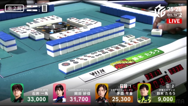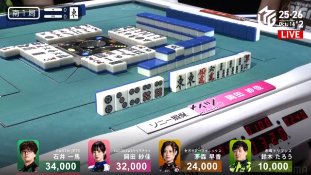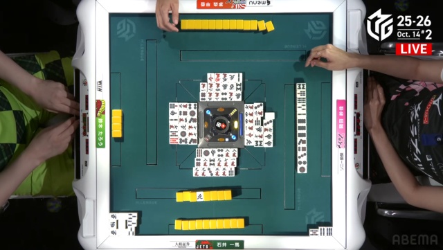 トップ目に34000点持ちの石井一馬。