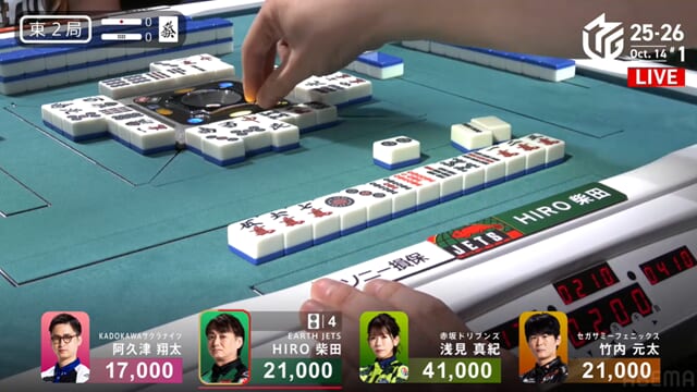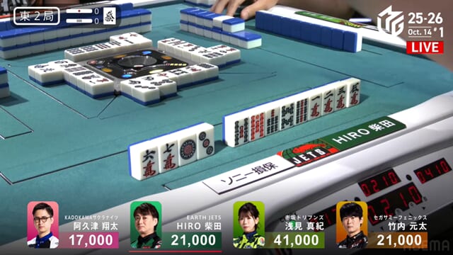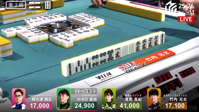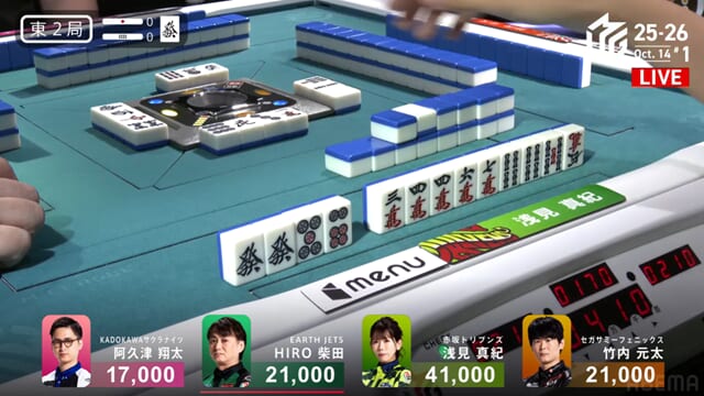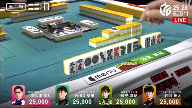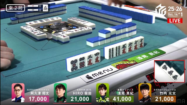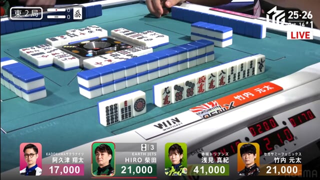 先手を取られた柴田だが、直前で浅見のアガリ牌であるを逃がすことに成功。