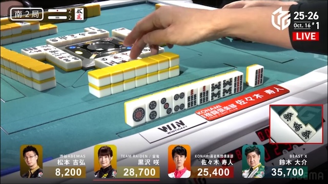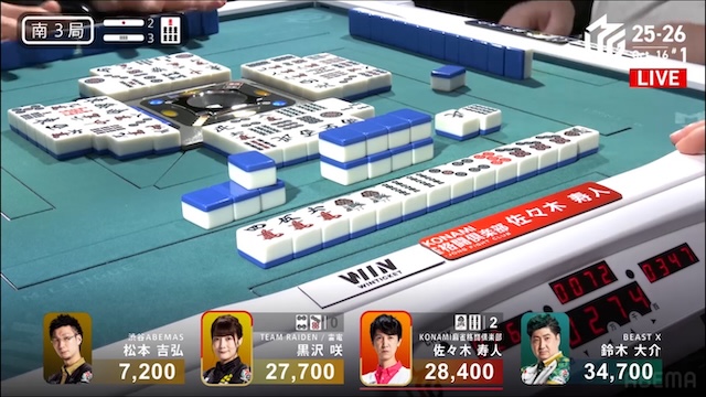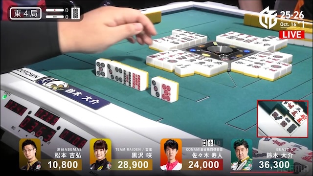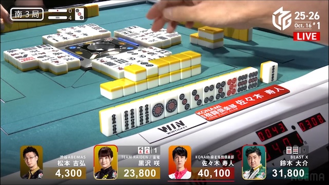 リーチ時には待ち牌が山に5枚も残っていただけに、悔しさが残る一局となった。