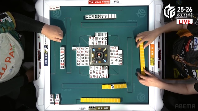 巡目的には早いようにも見える仕掛けだが、親番をつなぐことを優先した判断だった。