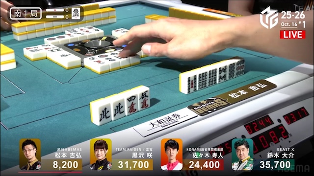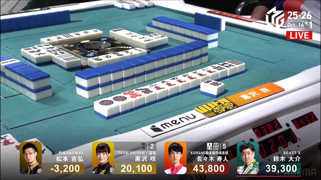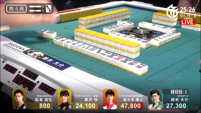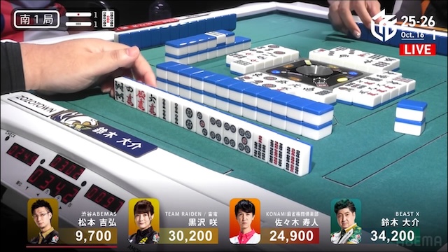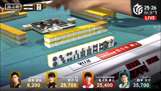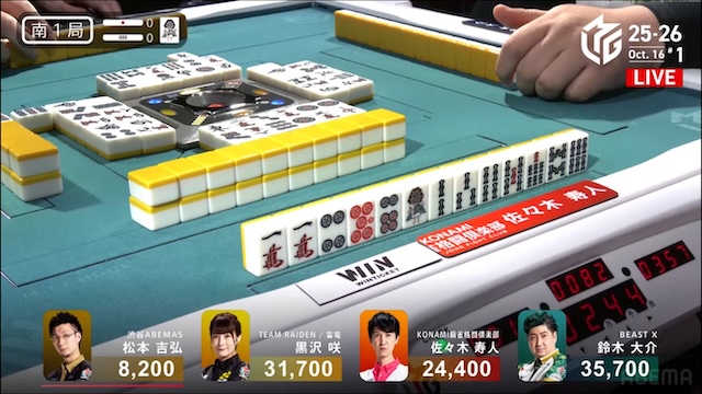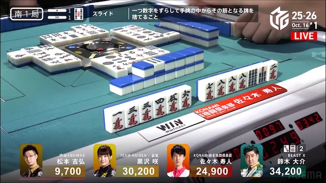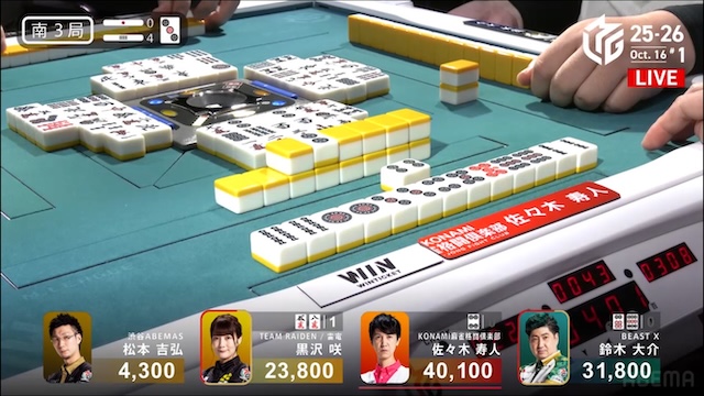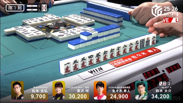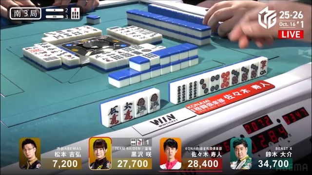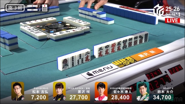 しかし次局は黒沢が500–1000は600–1100をツモアガリ。