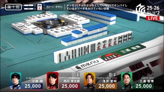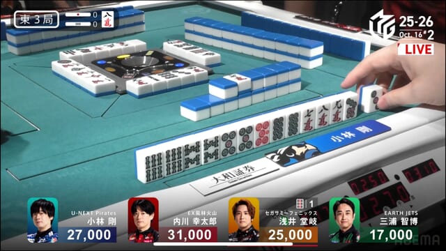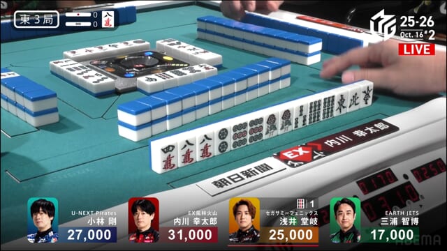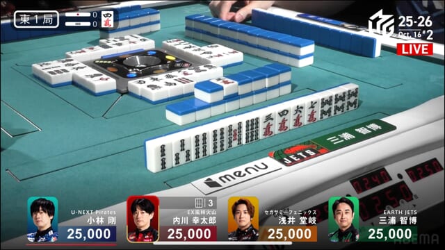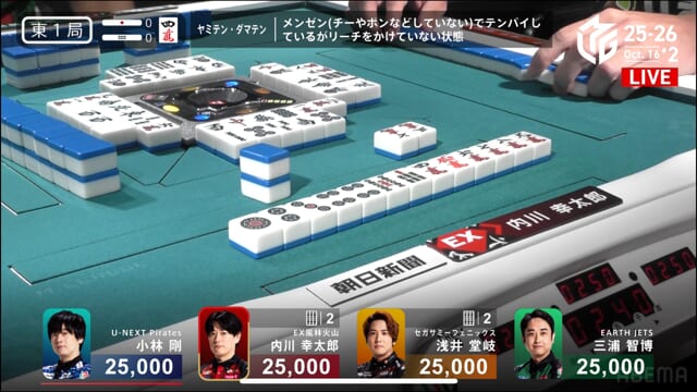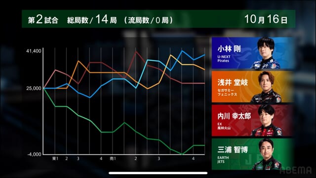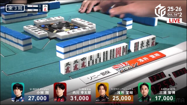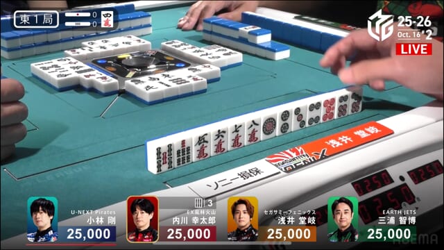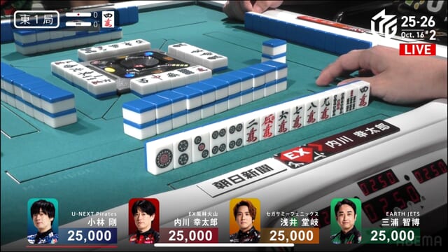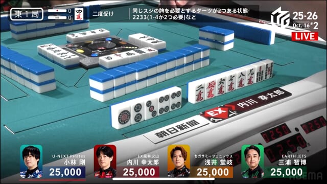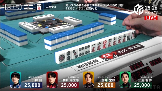 余談ではあるが、内川と同時に「ロン」と声を上げた堂岐は背中がつってしまうハプニングが。東2局がはじまるやいなや、「小休止ボタン」を押し、東2局を耐え凌いだという。なんとも愛おしいエピソードである。大事に至らなくて良かった。
