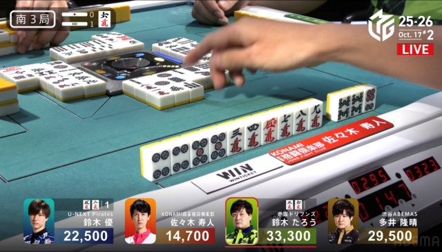 ラス目でくすぶっていた寿人にもピンフ・赤のテンパイが入った。