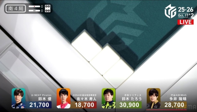 最後のを引き当てた寿人だったがヤミテンを選ばされ、しっくりこないアガリとなってしまった。
