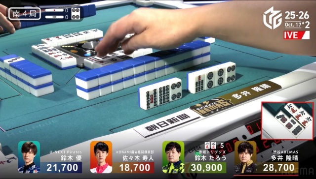 多井の待ち候補はマンズが全滅。ピンズなら–