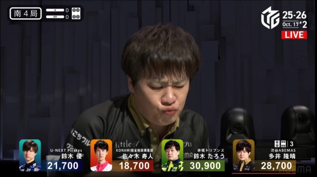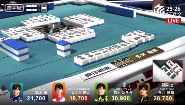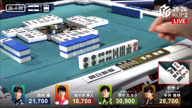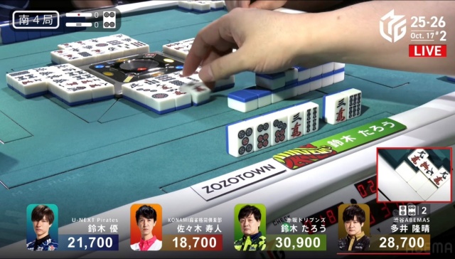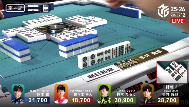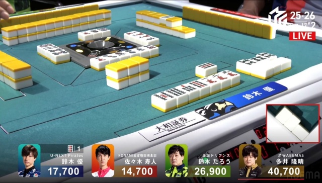 続く1本場は、ラス回避を目指す優が2,000点で捌いてゲームセットとなった。