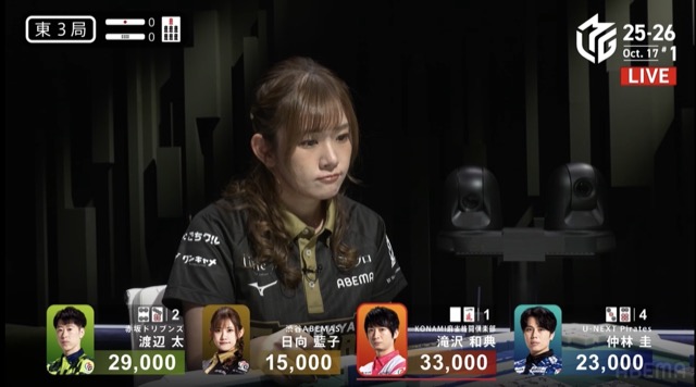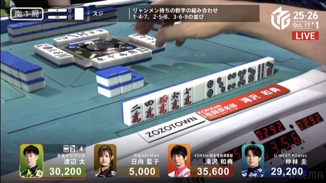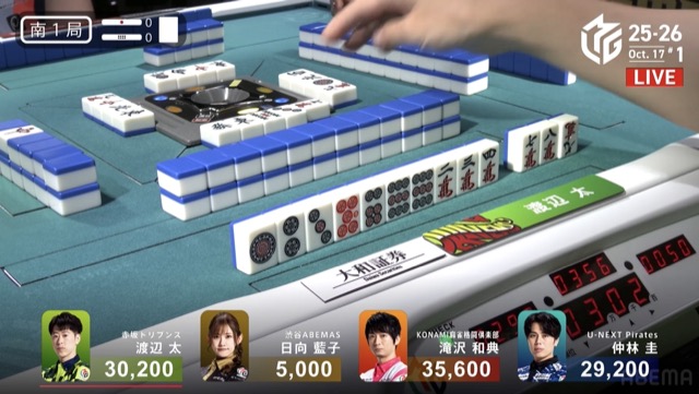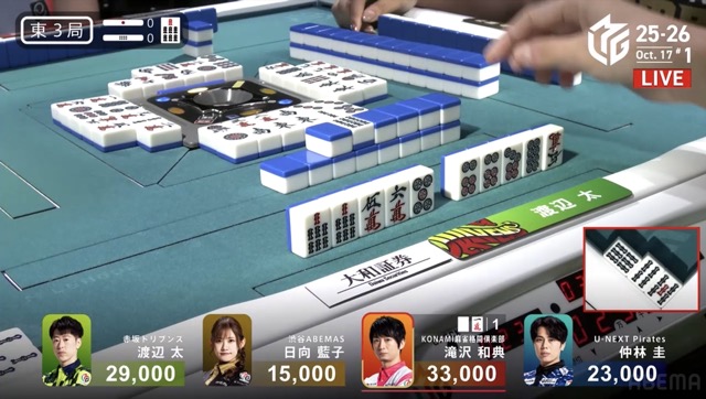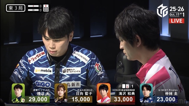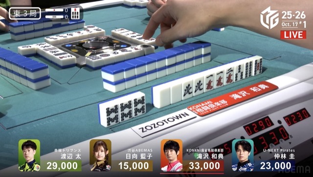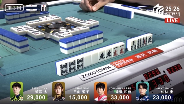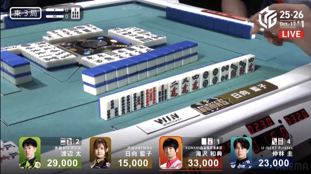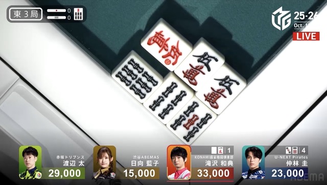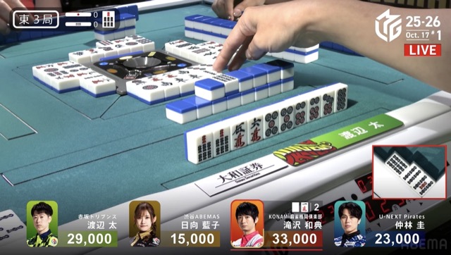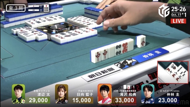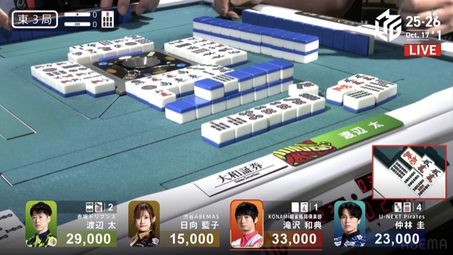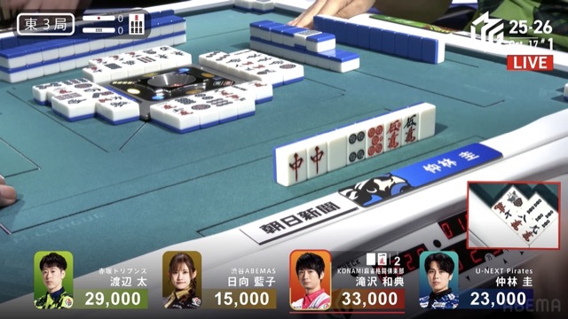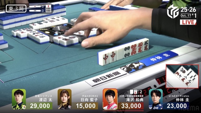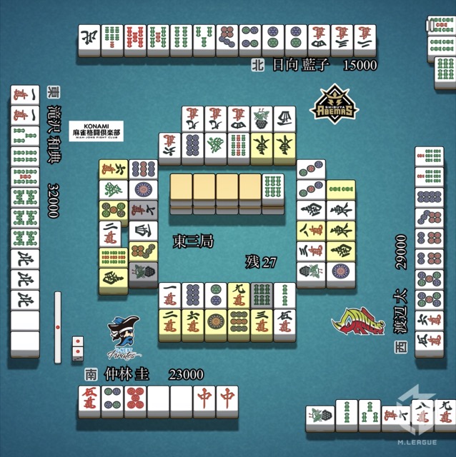 この親リーチを受けた手牌の短い2人の対応が興味深かった。
