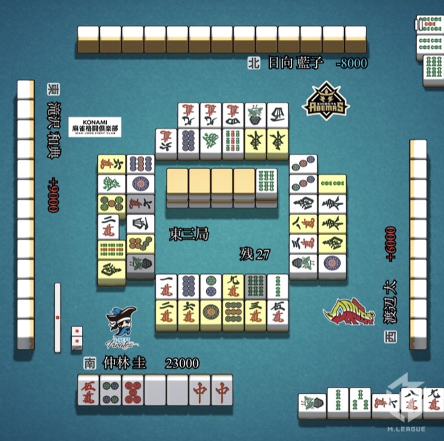 次巡、仲林が首尾よくテンパイを入れ、打。