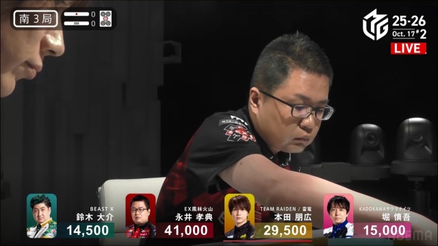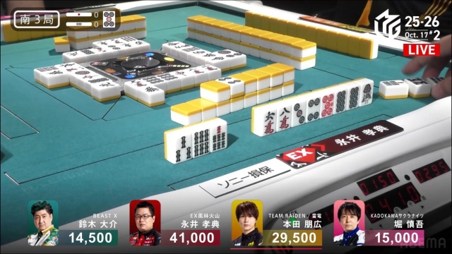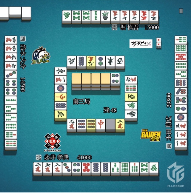 持ち点が近い大介と堀のニ将はお互いラス回避を意識せざるを得ない。