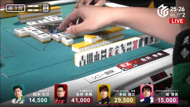 更にドラのが流れて、永井に絶好のテンパイが入る。そして…