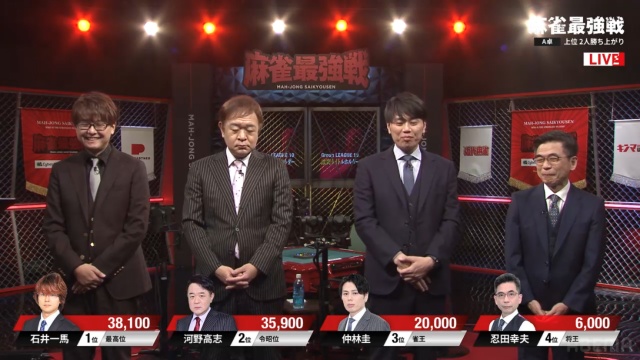 A卓勝ち上がりは石井一馬プロ! 河野高志プロ!【麻雀最強戦2025 激突タイトルホルダー】