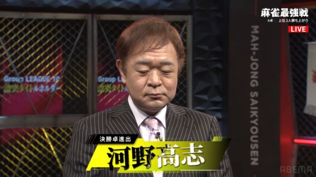▲A卓2位勝ち上がり・河野高志プロ