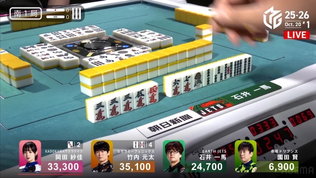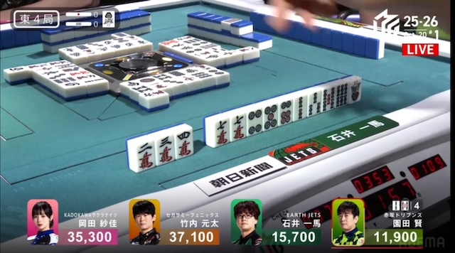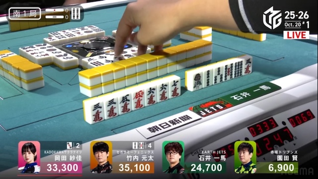 園田からの親リーチを受けた後、一馬が追い付いた。