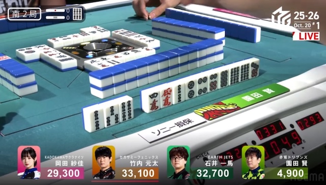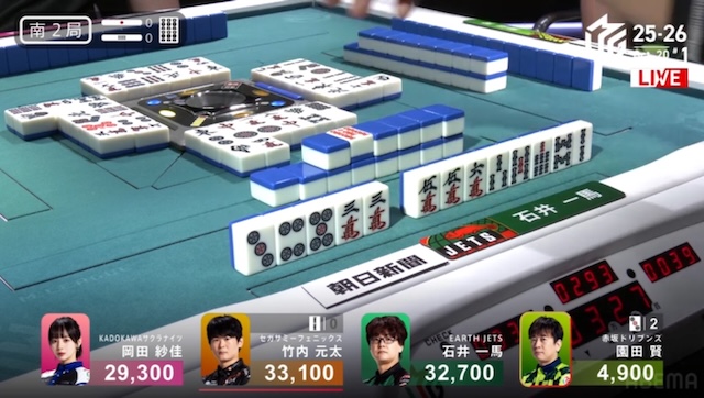 2000、4000のツモアガリで、これでまだまだトップが追える位置に復帰。