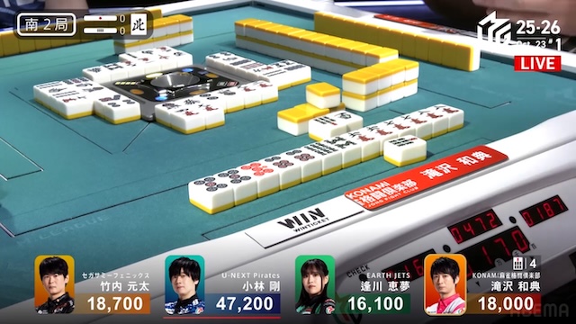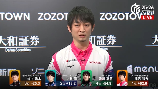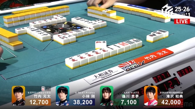 親番を迎えるこの局、2着目の小林も逆転条件を満たす手牌を整えていたが、元太が3着目を確定させるアガリを決めて勝負を終わらせた。