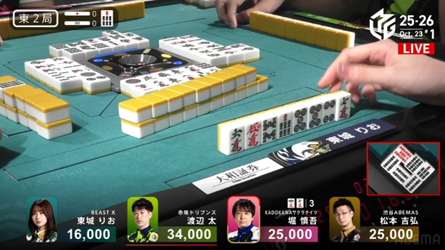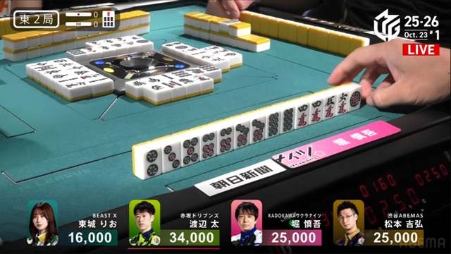 しかし、制したのは堀。東城から【7マン】が放たれ、リーチ・ピンフイーペーコーの3900点を獲得。打点を意識して組み替えた重厚な打ち筋が光った一局となった。
